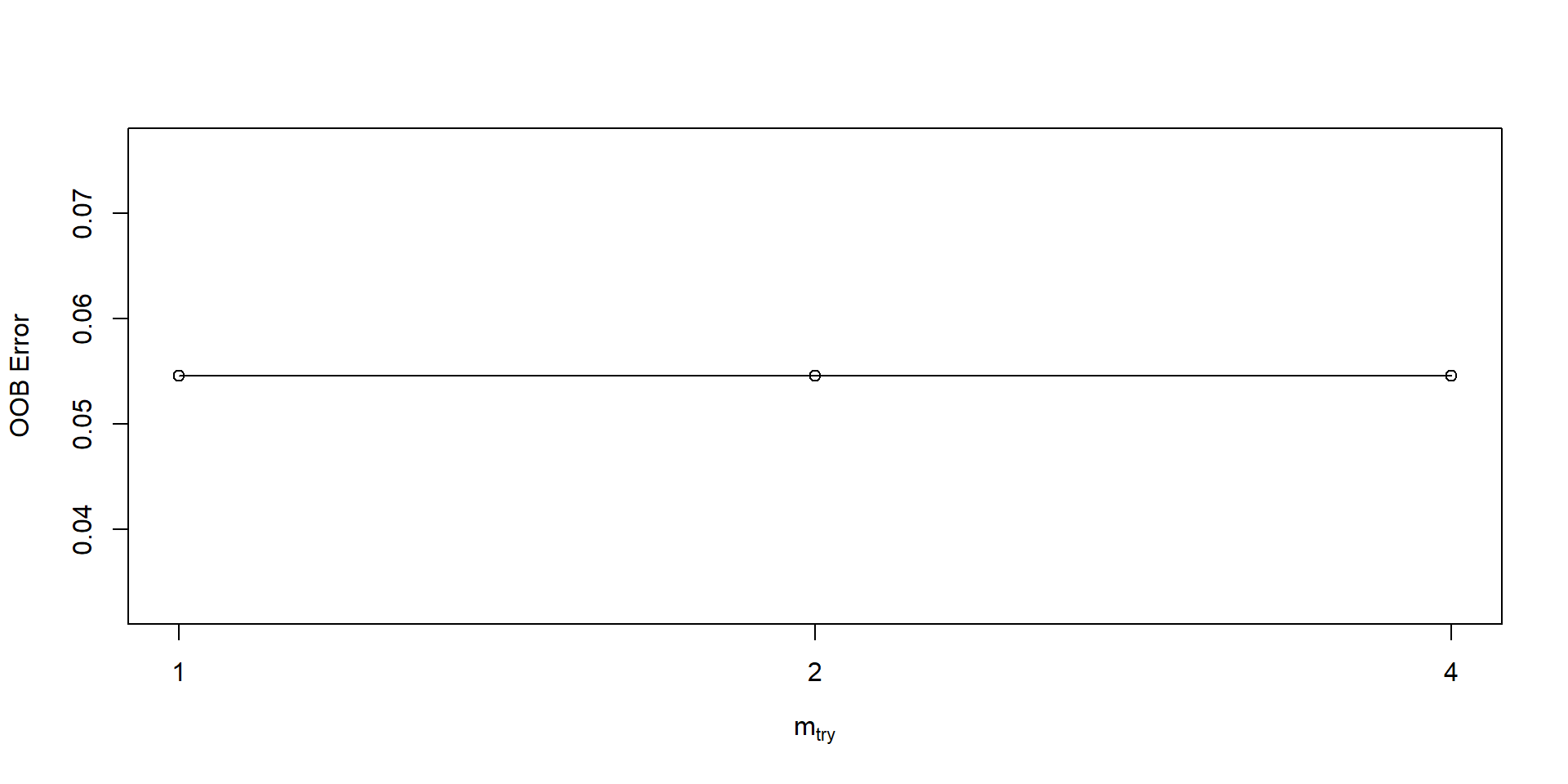 No gráfico abaixo é possível perceber como a escolha do número de variáveis em cada split faz diferença para o resultado final do modelo.